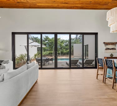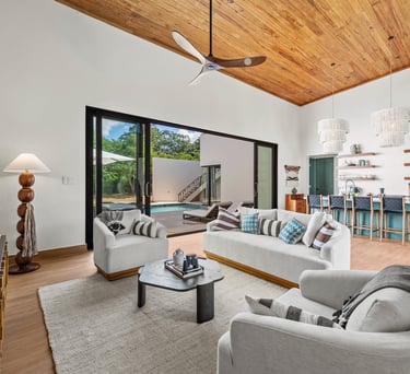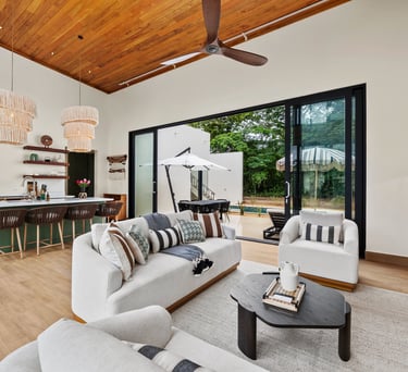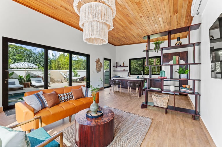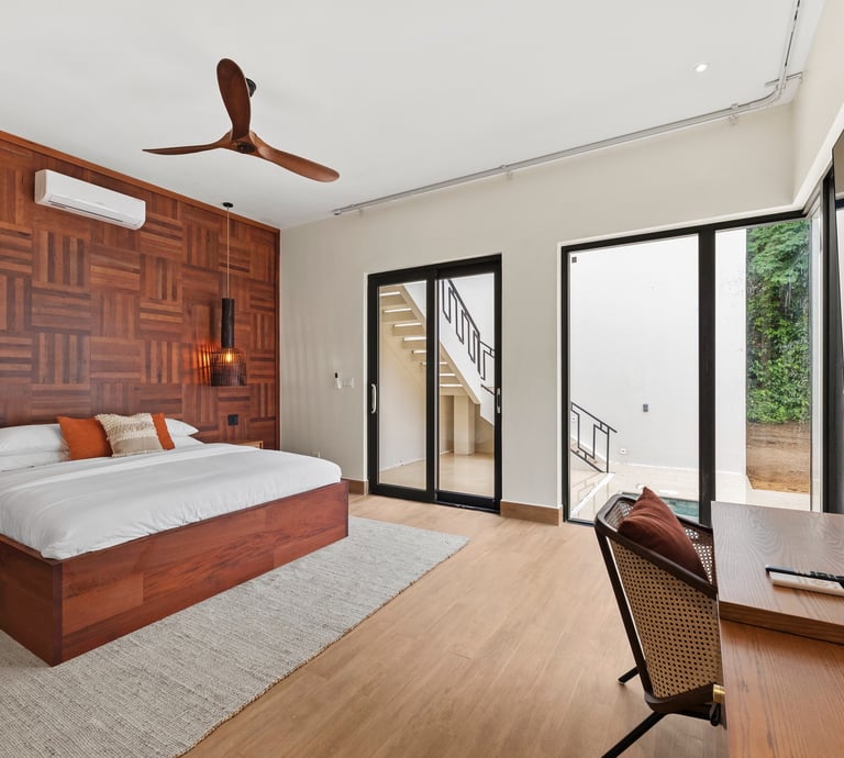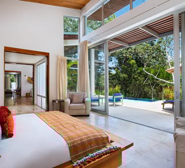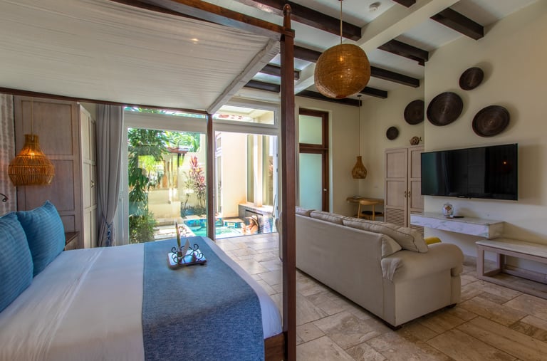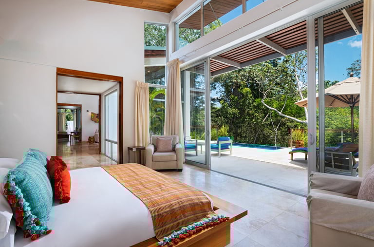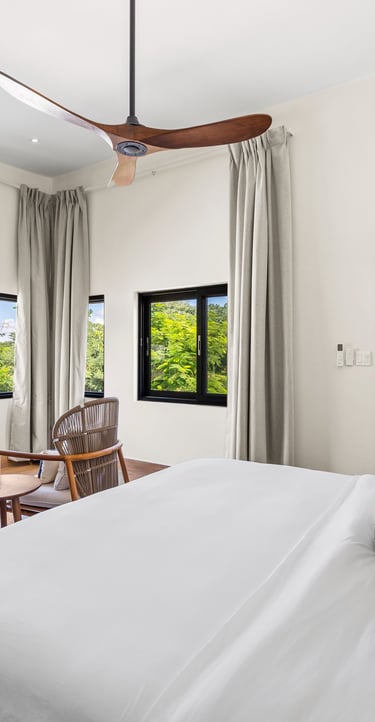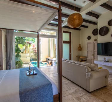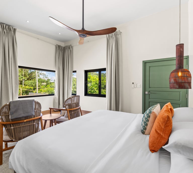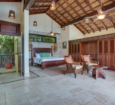 Averaging 1,235 sq. ft and boasting a large outdoor patio area with your very own private plunge pool, this unit creates a sense of grandeur while maintaining a relaxed ambiance throughout. Stunning and uninterrupted views over the Sibun River Reserve and a feeling of seclusion from the outside world. This penthouse suite reflects the true essence of the rainforest, having local mahogany wood, and furnished with a canopy king bed, a spacious bathroom, and an outdoor area perfect for appreciating those emotive Belizean sunsets.